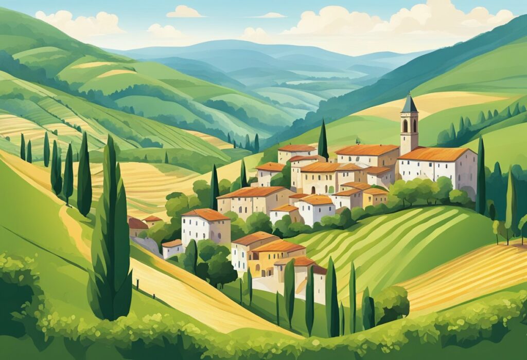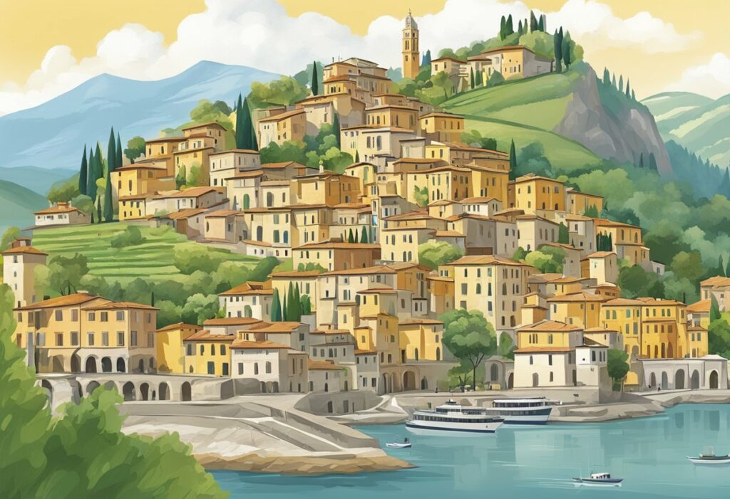 Umbria, ofte omtalt som “Italias grønne hjerte”, byr på frodige åser, innsjøer og skogkledde daler, og er rik på historiske byer som Gubbio, Spoleto og Assisi.